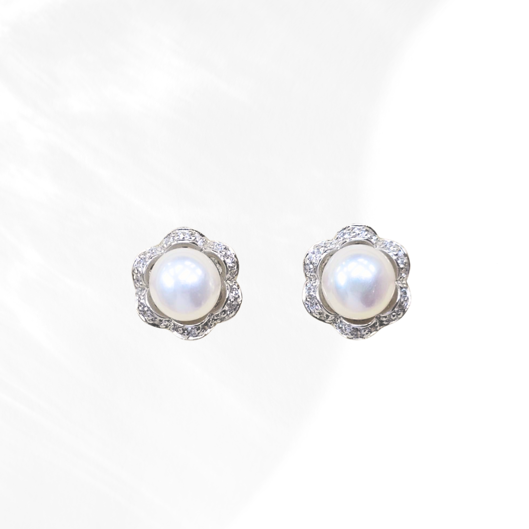 CLASSIC FORAL WHITE FRESHWATER PEARL WITH CZ