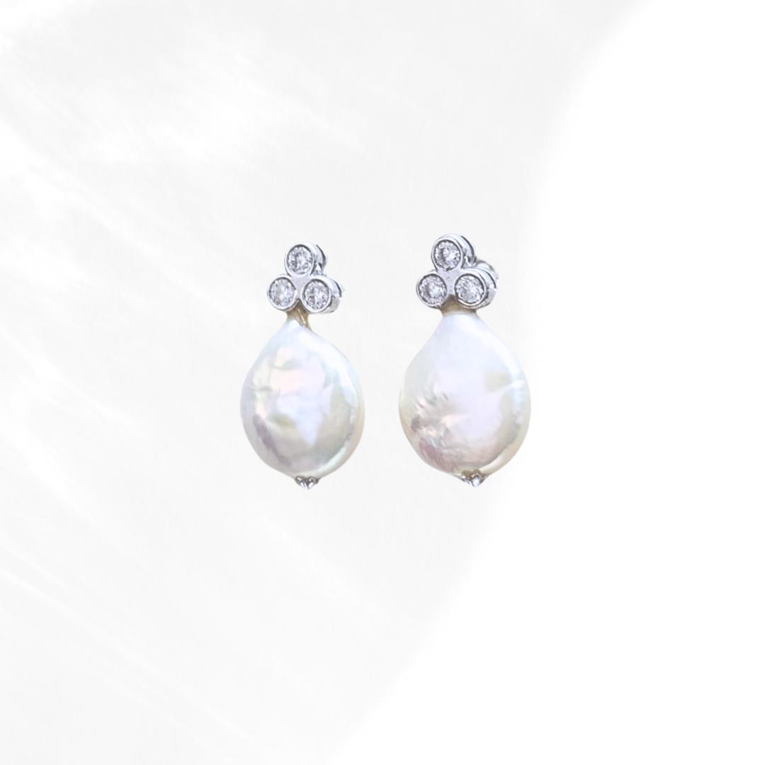 FLAT DROP FRESHWATER PEARL WITH CZ